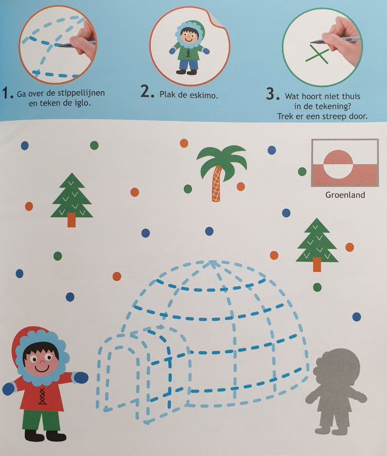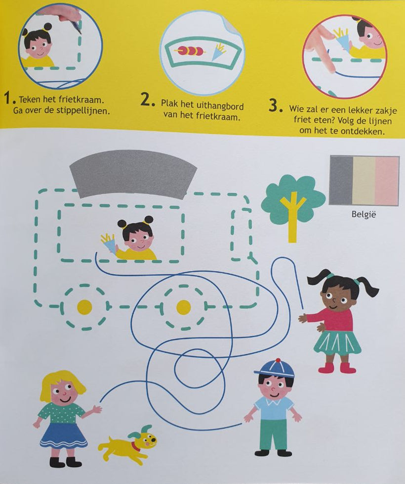 This activity book with stickers stimulates young children's development. The fun and educational activities are each divided into three simple steps. They help your child learn to count, encourage manual dexterity, and familiarize your toddler with colors and shapes.