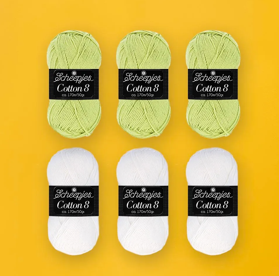 - 6 balls of Scheepjes Cotton 8 of 50 grams with a length of 170 meters per ball