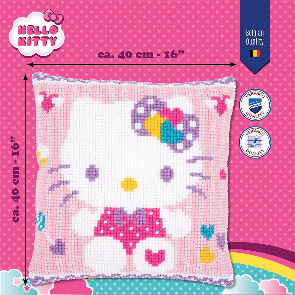 Kit de broderie au point de croix pour coussin avec toile Hello Kitty pré-imprimée.